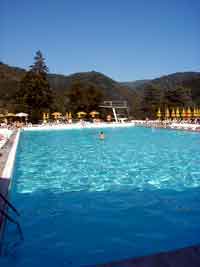 Bagni di Lucca Villa has a large open-air swimming pool (open Jun-Sept, 10am - 7pm) with a smaller shallow toddler pool and a diving pool with 1 metre and 4 metre diving boards. All of these are fed with water from a thermal spring and are surrounded by deckchairs and sun umbrellas, use of which is included in the admission charge, and sun loungers, for which an additional charge applies.